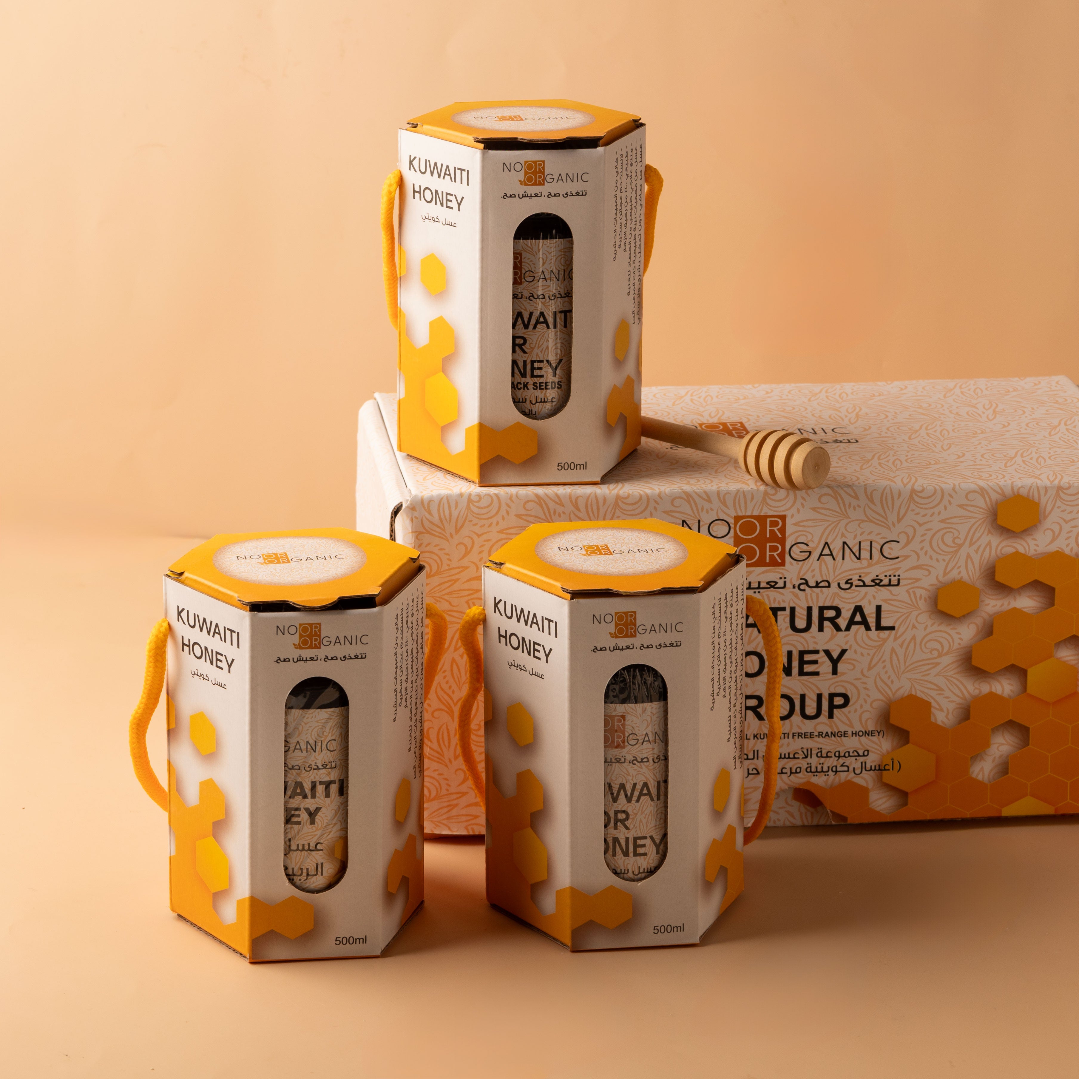 مجموعه اعسال طبيعيه عباره عن (عسل سدر مرعى حر +عسل سدر بالحبه السوداء + هديه عسل ازهار الربيع )